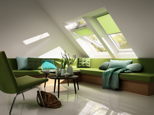 VELUX Sichtschutzrollos mildern blendendes Sonnenlicht ab und tauchen den Raum in angenehmes, stimmungsvolles Licht. Außerdem schützen sie Ihre Privatsphäre vor fremden Blicken, um die privaten Momente des Alltags entspannt genießen zu können.